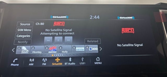 - Radio: SXM/AM/FM/AUX/USB Audio System -inc: 6 speakers, 12.3" color touch-screen display, wireless Apple CarPlay, wireless Android Auto, Bluetooth® hands-free phone system and streaming (audio or text message), voice recognition for audio features, Siri Eyes Free, NissanConnect services, Wi-Fi hotspot, 1 USB-A and 1 USB-C front ports and SiriusXM radio w/advanced audio features