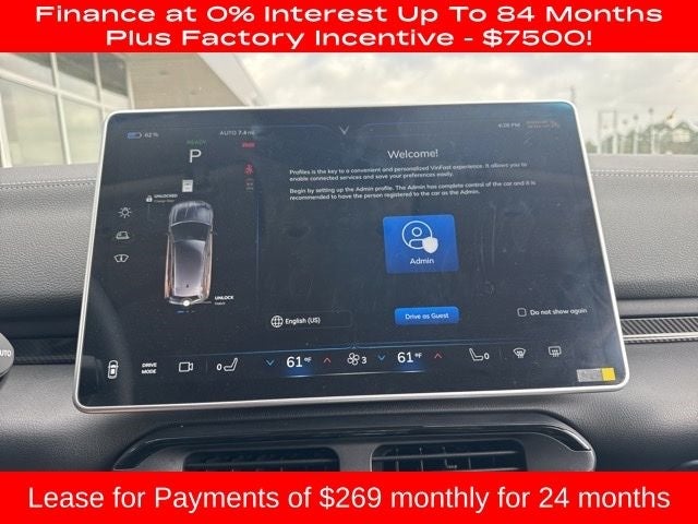 - Radio: Infotainment System w/Basic Media -inc: 15.6" infotainment screen, 8 speakers, Bluetooth® device (for phone call and audio), WI-FI management (car connect to Wi-Fi access point), basic media (radio FM, Bluetooth® music, USB multimedia), Android Auto, Apple CarPlay connection and navigation (display and search for points of interest, display live traffic and satellite view, route sharing from VinFast app, advanced trip planner w/multiple stops for fast charging stations)
