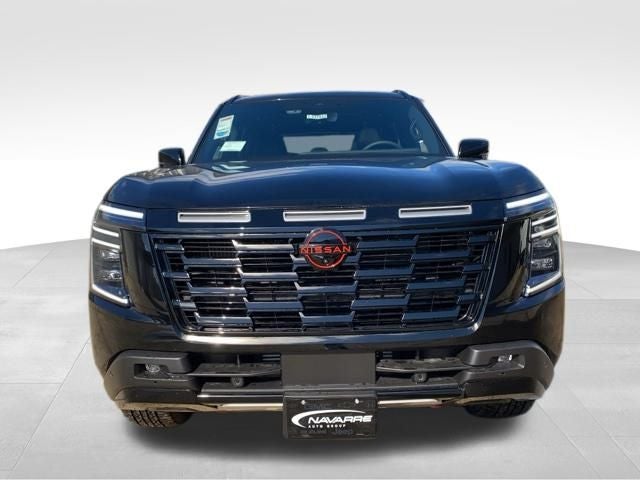 PRO-4X Premium Package with Split Bench (Biometric Cooling, Climate Controlled Heated and Ventilated Front Seats, Hands-Free Power Liftgate, Heated 2nd Row Seats, in-Car Camera, Intelligent Dash Cam, Intelligent Rear View Mirror (I-RVM), and Panoramic Moonroof), 4WD, 12 Speakers, 3rd row seats: split-bench, 4-Wheel Disc Brakes, ABS brakes, Adaptive suspension, Air Conditioning, Alloy wheels, AM/FM radio: SiriusXM w/360L, Anti-whiplash front head restraints, Apple CarPlay/Android Auto, Auto High-beam Headlights, Auto tilt-away steering wheel, Auto-dimming door mirrors, Auto-dimming Rear-View mirror, Auto-leveling suspension, Automatic temperature control, Brake assist, Bumpers: body-color, Compass, Cross Bars, Delay-off headlights, Driver door bin, Driver vanity mirror, Dual front impact airbags, Dual front side impact airbags, Electronic Stability Control, Emergency communication system: NissanConnect Services, Four wheel independent suspension, Front anti-roll bar, Front Bucket Seats, Front Center Armrest, Front dual zone A/C, Front fog lights, Front reading lights, Front Tow Hooks, Fully automatic headlights, Garage door transmitter: myQ Connected Garage, Genuine wood dashboard insert, Heated door mirrors, Heated Front Bucket Seats, Heated front seats, Heated steering wheel, HVAC memory, Illuminated entry, Illuminated Kick Plates, Illuminated Scuff Plates, Knee airbag, Leather steering wheel, Low tire pressure warning, Memory seat, Navigation system: Google Maps, Occupant sensing airbag, Outside temperature display, Overhead airbag, Overhead console, Panic alarm, Passenger door bin, Passenger vanity mirror, Power door mirrors, Power driver seat, Power Liftgate, Power passenger seat, Power steering, Power windows, PRO-4X Carpeted Floor Mats with Bench Seat, Pro-4x Leather Quilted Insert Seat Trim, PRO-4X Mud Guards, Radio: NissanConnect with SiriusXM 360L, Rain sensing wipers, Rear air conditioning, Rear anti-roll bar, Rear Bumper Protector, Rear reading lights, Rear seat center armrest, Rear window defroster, Rear window wiper, Reclining 3rd row seat, Remote keyless entry, Security system, Speed control, Speed-sensing steering, Speed-Sensitive Wipers, Split folding rear seat, Spoiler, Steering wheel memory, Steering wheel mounted audio controls, Tachometer, Telescoping steering wheel, Tilt steering wheel, Traction control, Trip computer, Turn signal indicator mirrors, USB Charging Cables, Variably intermittent wipers, Voltmeter, and Wheels: 20 x 8.5J Painted PRO-4X Alloy.