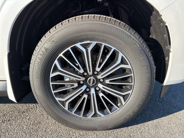 Captain's Chair Seat Package (2nd Row Center Console with Two Cupholders, 2nd Row Outboard Captain's Chairs with Armrests, and EZ Flex Second Row Seating System with One Touch Release), 12 Speakers, 3rd row seats: split-bench, 4-Wheel Disc Brakes, ABS brakes, Air Conditioning, Alloy wheels, AM/FM radio: SiriusXM w/360L, Anti-whiplash front head restraints, Apple CarPlay/Android Auto, Auto High-beam Headlights, Auto tilt-away steering wheel, Auto-dimming door mirrors, Auto-dimming Rear-View mirror, Auto-leveling suspension, Automatic temperature control, Brake assist, Bumpers: body-color, Carpeted Floor Mats with Captain Chairs, Center Front Spoiler, Compass, Cross Bars, Delay-off headlights, Driver door bin, Driver vanity mirror, Dual front impact airbags, Dual front side impact airbags, Electronic Stability Control, Emergency communication system: NissanConnect Services, Four wheel independent suspension, Front anti-roll bar, Front Bucket Seats, Front Center Armrest, Front dual zone A/C, Front reading lights, Fully automatic headlights, Garage door transmitter: myQ Connected Garage, Genuine wood dashboard insert, Heated door mirrors, Heated Front Bucket Seats, Heated front seats, Heated steering wheel, HVAC memory, Illuminated entry, Knee airbag, Leather steering wheel, Low tire pressure warning, Memory seat, Navigation system: Google Maps, Occupant sensing airbag, Outside temperature display, Overhead airbag, Overhead console, Panic alarm, Passenger door bin, Passenger vanity mirror, Power door mirrors, Power driver seat, Power Liftgate, Power passenger seat, Power steering, Power windows, Premium Paint, Radio: NissanConnect with SiriusXM 360L, Rain sensing wipers, Rear air conditioning, Rear anti-roll bar, Rear Bumper Protector, Rear reading lights, Rear seat center armrest, Rear window defroster, Rear window wiper, Reclining 3rd row seat, Remote keyless entry, Security system, Speed control, Speed-sensing steering, Speed-Sensitive Wipers, Splash Guards, Split folding rear seat, Spoiler, Steering wheel memory, Steering wheel mounted audio controls, Tachometer, TailorFit Seat Trim, Telescoping steering wheel, Tilt steering wheel, Traction control, Trip computer, Turn signal indicator mirrors, Variably intermittent wipers, Voltmeter, and Wheels: 20 x 8.5J Machined and Painted Alloy.
