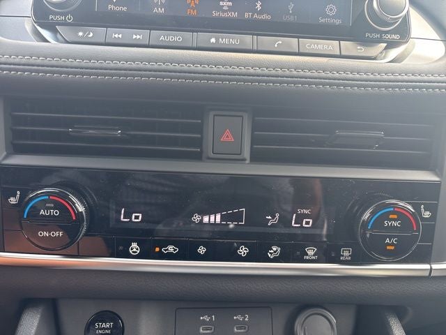 4-Wheel Disc Brakes, 6 Speakers, ABS brakes, Air Conditioning, Alloy wheels, AM/FM radio, Apple CarPlay/Android Auto, Auto High-beam Headlights, Automatic temperature control, Black Splash Guards (set of 4), Brake assist, Bumpers: body-color, Delay-off headlights, Driver door bin, Driver vanity mirror, Dual front impact airbags, Dual front side impact airbags, Electronic Stability Control, Emergency communication system: NissanConnect Services, Exterior Parking Camera Rear, First Aid Kit, Floor Mats with 1-Piece Cargo Area Protector, Four wheel independent suspension, Frameless Rearview Mirror with Universal Remote, Front anti-roll bar, Front Bucket Seats, Front Center Armrest, Front dual zone A/C, Front reading lights, Fully automatic headlights, Heated door mirrors, Heated Front Bucket Seats, Heated front seats, Heated steering wheel, Illuminated entry, Illuminated Kick Plates, Knee airbag, Low tire pressure warning, Occupant sensing airbag, Outside temperature display, Overhead airbag, Overhead console, Panic alarm, Passenger door bin, Passenger vanity mirror, Power door mirrors, Power driver seat, Power Liftgate, Power moonroof, Power steering, Power windows, Prima-Tex Leatherette Seat Trim, Radio data system, Radio: AM/FM NissanConnect, Rear anti-roll bar, Rear Parking Sensors, Rear reading lights, Rear seat center armrest, Rear side impact airbag, Rear window defroster, Rear window wiper, Remote keyless entry, Speed control, Speed-sensing steering, Speed-Sensitive Wipers, Split folding rear seat, Spoiler, Steering wheel mounted audio controls, Tachometer, Telescoping steering wheel, Tilt steering wheel, Traction control, Trip computer, Variably intermittent wipers, and Wheels: 19 Black Painted and Machine Finished Alloy. Price includes: $3500 - Nissan Customer Cash. Exp. 05/04/2026