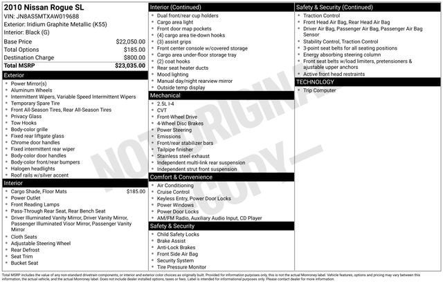 Iridium Graphite Metallic 2010 Nissan Rogue SL FWD CVT 2.5L I4 DOHC 16V