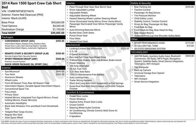 2014 Ram 1500 Sport 4WD 8-Speed Automatic HEMI 5.7L V8 Multi Displacement VVT Flame Red Clearcoat