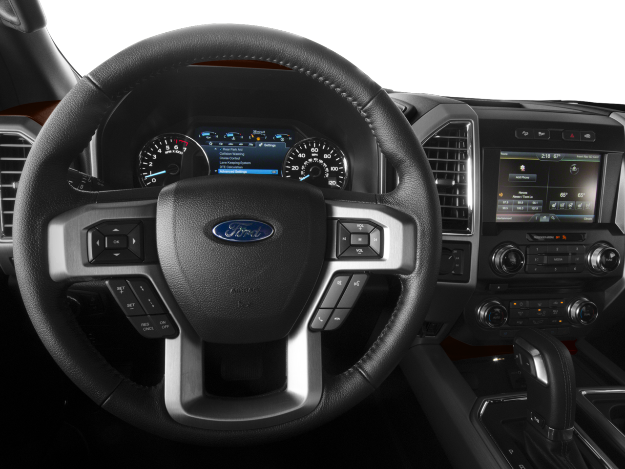 Equipment Group 701A Luxury (Adaptive Cruise Control & Collision Warning and Tailgate Step w/Tailgate Lift Assist), FX4 Off-Road Package (4x4 FX4 Off-Road Bodyside Decal, Electronic Locking w/3.31 Axle Ratio, Front & Rear Off-Road Tuned Shock Absorbers, and Hill Descent Control), Max Trailer Tow Package (Auxiliary Transmission Oil Cooler, Class IV Trailer Hitch Receiver, Electronic Locking w/3.55 Axle Ratio, Integrated Trailer Brake Controller, Pro Trailer Backup Assist, and Upgraded Front Stabilizer Bar), Technology Package (Lane-Keeping System), 4WD, 10 Speakers, 20 Polished Aluminum Wheels, 3.31 Axle Ratio, 4-Wheel Disc Brakes, ABS brakes, Active Park Assist, Adjustable pedals, Air Conditioning, All-Weather Rubber Floor Mats, Alloy wheels, AM/FM radio: SiriusXM, Auto High-beam Headlights, Auto tilt-away steering wheel, Auto-dimming door mirrors, Auto-dimming Rear-View mirror, Automatic temperature control, Black Unique Multi-Contour Leather Bucket Seats, Brake assist, Bumpers: chrome, CD player, Compass, Delay-off headlights, Driver door bin, Driver vanity mirror, Dual front impact airbags, Dual front side impact airbags, Electronic Stability Control, Extended Range 36 Gallon Fuel Tank, Exterior Parking Camera Rear, Front anti-roll bar, Front Bucket Seats, Front Center Armrest, Front dual zone A/C, Front fog lights, Front License Plate Bracket, Front reading lights, Front wheel independent suspension, Fully automatic headlights, Garage door transmitter, Genuine wood door panel insert, Heated door mirrors, Heated front seats, Heated rear seats, Heated steering wheel, Illuminated entry, Low tire pressure warning, Memory seat, Navigation System, Occupant sensing airbag, Outside temperature display, Overhead airbag, Overhead console, Panic alarm, Passenger door bin, Passenger vanity mirror, Pedal memory, Power door mirrors, Power driver seat, Power passenger seat, Power steering, Power windows, Radio data system, Radio: Sony Single CD w/HD & SiriusXM Satellite, Rain sensing wipers, Rear Parking Sensors, Rear reading lights, Rear seat center armrest, Rear step bumper, Rear window defroster, Remote keyless entry, Security system, Speed control, Speed-sensing steering, Split folding rear seat, Spray-In Bedliner (Pre-Installed), Steering wheel memory, Steering wheel mounted audio controls, SYNC 3, Tachometer, Telescoping steering wheel, Tilt steering wheel, Traction control, Trip computer, Turn signal indicator mirrors, Twin Panel Moonroof, Variably intermittent wipers, Ventilated front seats, Voice-Activated Navigation, and Voltmeter.