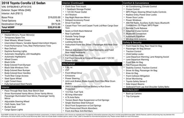 Discover the perfect blend of style, efficiency, and convenience in this 2018 Toyota Corolla LE. With its sleek exterior, spacious interior, and impressive list of features, this Corolla is the ideal choice for the discerning driver.