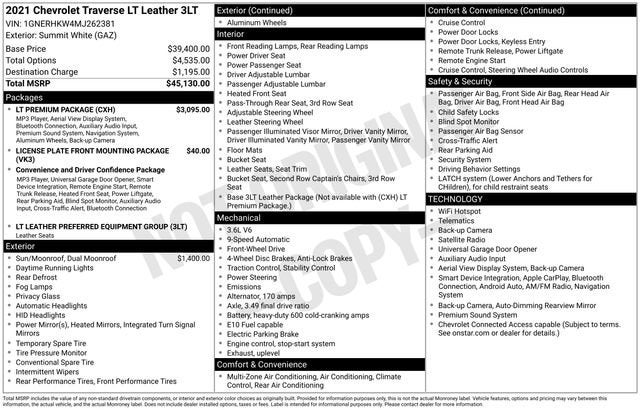 Elevate your driving experience with this stunning 2021 Chevrolet Traverse LT Leather. Boasting a sleek white exterior and a spacious, well-appointed interior, this versatile SUV is the perfect blend of style and functionality.