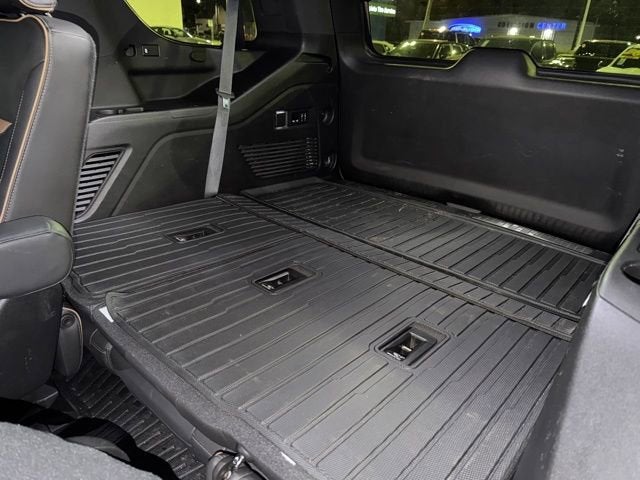License Plate Front Mounting Package, Max Trailering Package (Extra Capacity Cooling System), Preferred Equipment Group 4SB (12-Way Power Seat Adjusters, 2 Presets For Outside Rearview Mirrors, 3rd Row 60/40 Power-Folding Split-Bench Seat, Black Roof-Mounted Luggage Rack Side Rails, Bose 9-Speaker Stereo Audio System Feature, Bright Front & Rear Door Sill Plates, Front High-Approach Angle Fascia, Hands-Free Power Programmable Rear Liftgate, Heated & Ventilated Driver & Front Passenger Seats, Heated 2nd Row Outboard Position Seats, Heated Automatic Steering Wheel, Heated Driver & Front Passenger Seats, Heavy-Duty Air Filter, Hill Descent Control, Inside Rear-View Auto-Dimming Mirror, Outside Heated Power-Adjustable Mirrors, Power Release 2nd Row 60/40 Split-Folding Bench Seat, Power Tilt & Telescopic Steering Column, Red Horizontal-Mounted Recovery Hooks, Safety Alert Seat, and Universal Home Remote), Rear Media & Nav Package (HD Radio, Radio: AM/FM/SiriusXM w/Navigation, Rear Seat Media System, and SiriusXM w/360L), Technology Package (15 Diagonal Multi-Color Head-Up Display, HD Surround Vision, and Rear Pedestrian Alert), 4WD, 3.23 Rear Axle Ratio, 3rd row seats: split-bench, 4-Wheel Disc Brakes, 9 Speakers, ABS brakes, Adaptive suspension, Air Conditioning, Alloy wheels, AM/FM radio: SiriusXM with 360L, Apple CarPlay/Android Auto, Auto High-beam Headlights, Auto-dimming door mirrors, Auto-dimming Rear-View mirror, Auto-leveling suspension, Automatic Emergency Braking, Automatic temperature control, Brake assist, Bumpers: body-color, Compass, Delay-off headlights, Driver door bin, Driver vanity mirror, Dual front impact airbags, Dual front side impact airbags, Dual-Pane Panoramic Power Sunroof, Electronic Stability Control, Emergency communication system: OnStar and GMC connected services capable, Following Distance Indicator, Forward Collision Alert, Four wheel independent suspension, Front & Rear Park Assist, Front anti-roll bar, Front Bucket Seats, Front Center Armrest, Front dual zone A/C, Front fog lights, Front Pedestrian Braking, Front reading lights, Fully automatic headlights, Garage door transmitter, Heated door mirrors, Heated front seats, Heated rear seats, Heated steering wheel, Hitch Guidance w/Hitch View, Illuminated entry, In-Vehicle Trailering App, Integrated Trailer Brake Controller, IntelliBeam Automatic High Beam On/Off, Lane Change Alert w/Side Blind Zone Alert, Lane Keep Assist w/Lane Departure Warning, Leather steering wheel, Low tire pressure warning, Magnetic Ride Control Suspension, Memory seat, Occupant sensing airbag, Outside temperature display, Overhead airbag, Overhead console, Panic alarm, Passenger door bin, Passenger vanity mirror, Perforated Leather Seating Surfaces, Power door mirrors, Power driver seat, Power Liftgate, Power passenger seat, Power Release 2nd Row Bucket Seats, Power steering, Power windows, Radio: AM/FM/SiriusXM, Rain sensing wipers, Rear air conditioning, Rear anti-roll bar, Rear Cross Traffic Alert, Rear reading lights, Rear seat center armrest, Rear window defroster, Rear window wiper, Remote keyless entry, Roof rack: rails only, Security system, Speed control, Speed-sensing steering, Split folding rear seat, Spoiler, Steering wheel memory, Steering wheel mounted audio controls, Tachometer, Telescoping steering wheel, Tilt steering wheel, Traction control, Trailer Side Blind Zone Alert, Trip computer, Turn signal indicator mirrors, Variably intermittent wipers, Ventilated front seats, Voltmeter, and Wheels: 20 x 9 6-Spoke Machined Aluminum. Recent Arrival! 4WD.