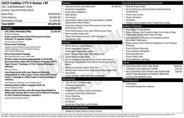 Recent Arrival! 18/27 City/Highway MPGExperience the exhilarating performance and refined elegance of the 2022 Cadillac CT5 V-Series. This captivating sports sedan is a true masterpiece of automotive engineering, blending power, style, and cutting-edge technology to deliver an unparalleled driving experience.• Onyx Package (LPO) w/Black Raven• UltraView Dual Pane Sunroof• Red Front & Rear Calipers• Black Mirror Caps (LPO)• Wheels: 20 Alloy w/Gloss Black Finish (LPO)Powered by a potent 3.0L V6 engine and paired with a responsive 10-speed automatic transmission, the CT5 V-Series delivers exceptional acceleration and handling. With its rear-wheel-drive configuration and adaptive suspension, this Cadillac provides a thrilling and engaging driving dynamic that will captivate your senses.Step inside the CT5 V-Series and be enveloped in a cabin of unparalleled craftsmanship and attention to detail. The Inteluxe seating surfaces and Performance Front Bucket Seats offer exceptional comfort and support, while the Bose Performance Series Premium 15-Speaker System delivers a concert-hall-quality audio experience.The Cadillac User Experience infotainment system provides seamless integration of your smartphone's capabilities, allowing you to stay connected and entertained on the go. With features like Apple CarPlay, Android Auto, and the HD Rear Vision Camera, you'll have all the tools you need to navigate the road with confidence and ease.Safety is a top priority in the CT5 V-Series, with a suite of advanced driver-assistance technologies, including Lane Keep Assist with Lane Departure Warning and Front & Rear Park Assist, ensuring you and your passengers are well-protected.This stunning 2022 Cadillac CT5 V-Series is a true masterpiece of automotive engineering, blending exhilarating performance, refined luxury, and cutting-edge technology. Experience the thrill of the open road and the comfort of exceptional craftsmanship by scheduling a test drive today.This vehicle is located at Navarre Cadillac, 1300 East College Street, Lake Charles, LA 70607. Please call any of our Sales Professionals at 337-474-1999 for more details or to set an appointment!
