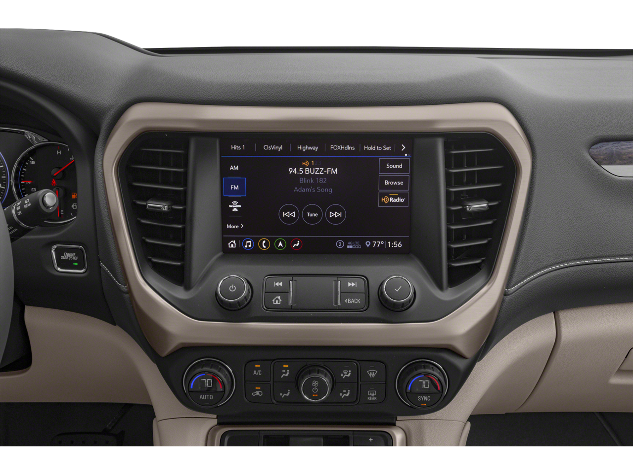 - 8" diagonal GMC Infotainment System with Navigation, includes multi-touch display, AM/FM/SiriusXM1 radio