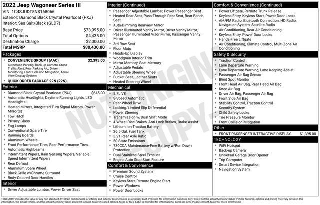 Diamond Black Crystal Pearlcoat 2022 Jeep Wagoneer Series III RWD 8-Speed Automatic 5.7L V8