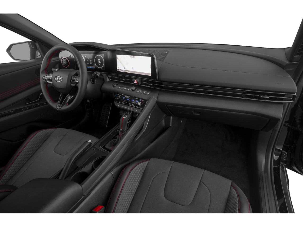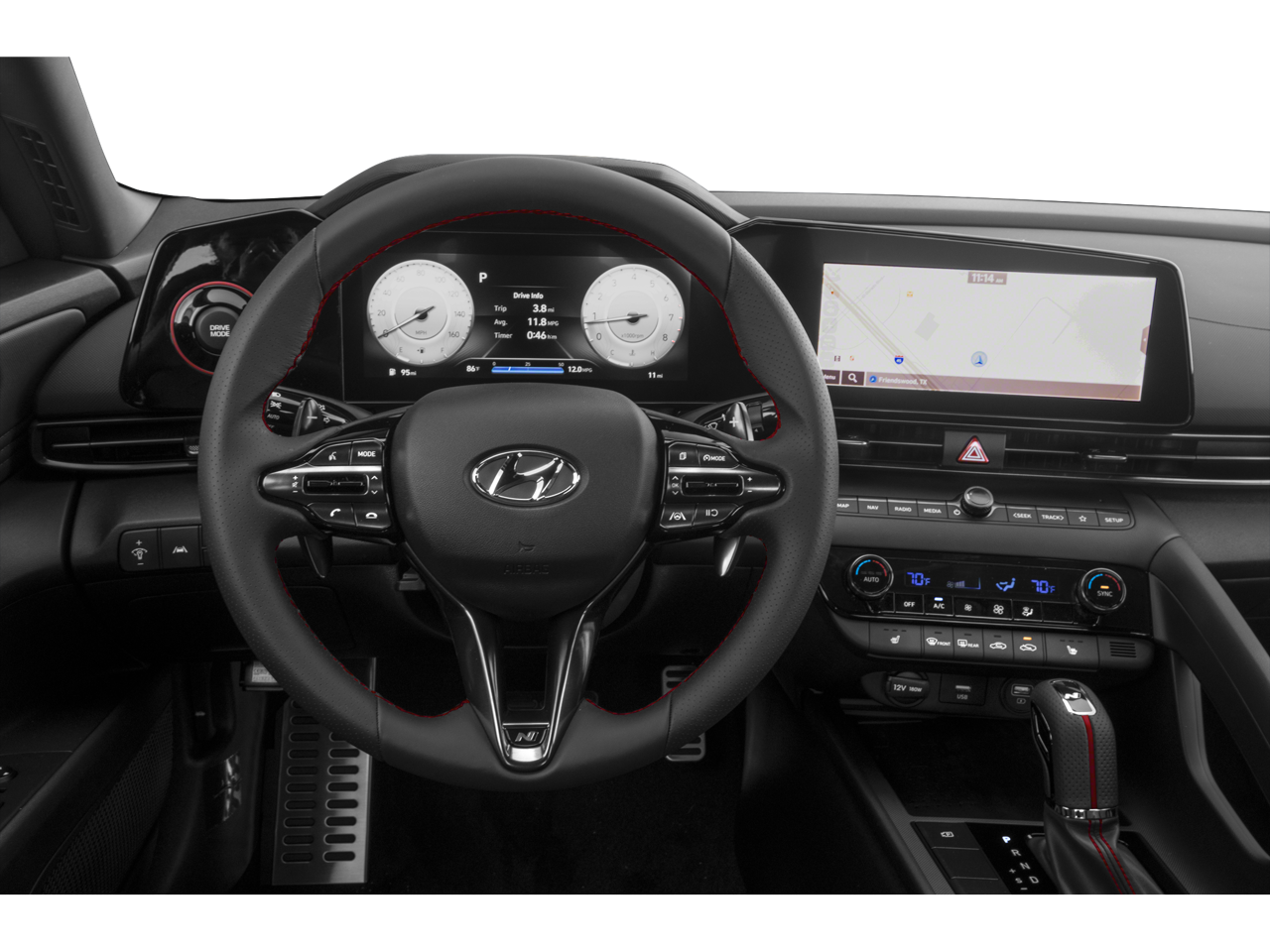 Step inside and you'll be greeted by a host of premium features that elevate your driving experience. The Elantra N Line offers a navigation system, 6-speaker audio system, and dual-zone automatic climate control, ensuring your comfort and convenience. Stay connected with Apple CarPlay and Android Auto, while the power driver's seat and leather-wrapped steering wheel add a touch of luxury.