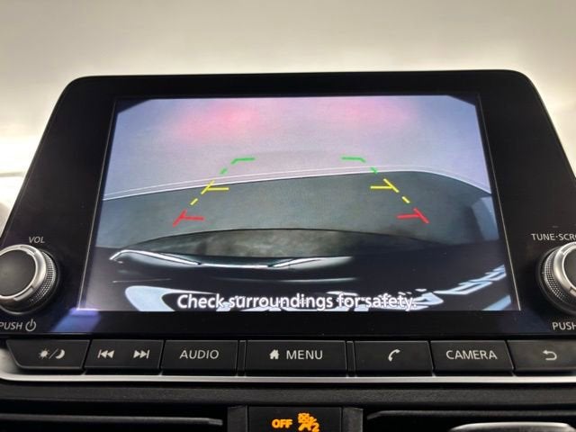 CVT with Xtronic, 17 Alloy Wheels, 4-Wheel Disc Brakes, 6 Speakers, ABS brakes, Air Conditioning, Alloy wheels, AM/FM radio: SiriusXM, Auto High-beam Headlights, Blind Spot Warning, Brake assist, Bumpers: body-color, Cloth Seat Trim, Delay-off headlights, Driver door bin, Driver vanity mirror, Dual front impact airbags, Dual front side impact airbags, Electronic Stability Control, Floor Mats/Trunk Mat/Hideaway Net, Four wheel independent suspension, Front anti-roll bar, Front Bucket Seats, Front Center Armrest, Front reading lights, Fully automatic headlights, Illuminated entry, Knee airbag, Low tire pressure warning, NissanConnect featuring Apple CarPlay, Occupant sensing airbag, Outside temperature display, Overhead airbag, Overhead console, Panic alarm, Passenger door bin, Passenger vanity mirror, Power door mirrors, Power driver seat, Power steering, Power windows, Radio data system, Radio: AM/FM Audio System, Rear anti-roll bar, Rear Parking Sensors, Rear reading lights, Rear seat center armrest, Rear side impact airbag, Rear window defroster, Remote keyless entry, Security system, Speed control, Speed-sensing steering, Speed-Sensitive Wipers, Split folding rear seat, Steering wheel mounted audio controls, Tachometer, Telescoping steering wheel, Tilt steering wheel, Traction control, Trip computer, and Variably intermittent wipers. CVT with Xtronic.
